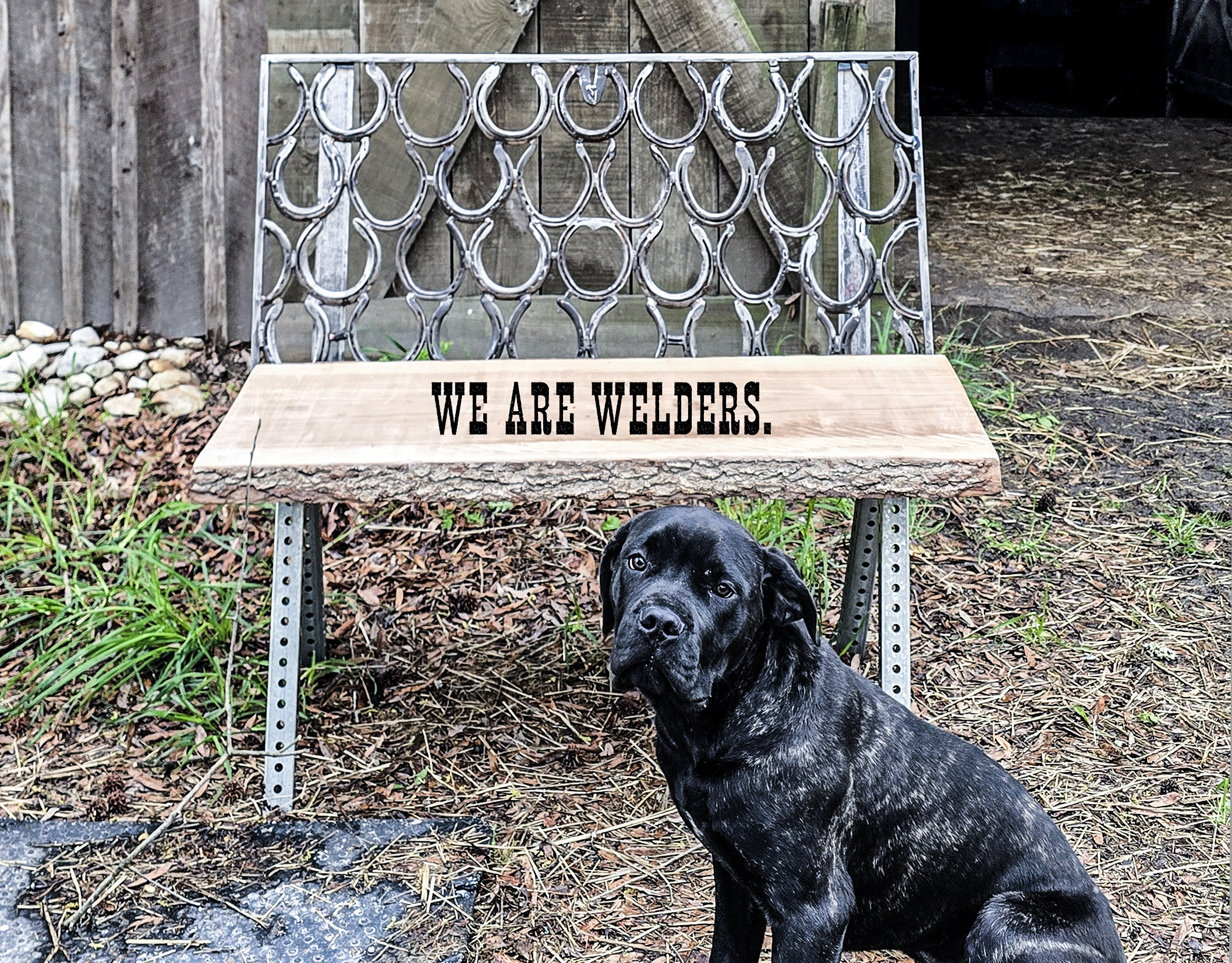 HORSESHOE BENCH W CHERRY SLAB *🐶PUPPY NOT INCLUDED